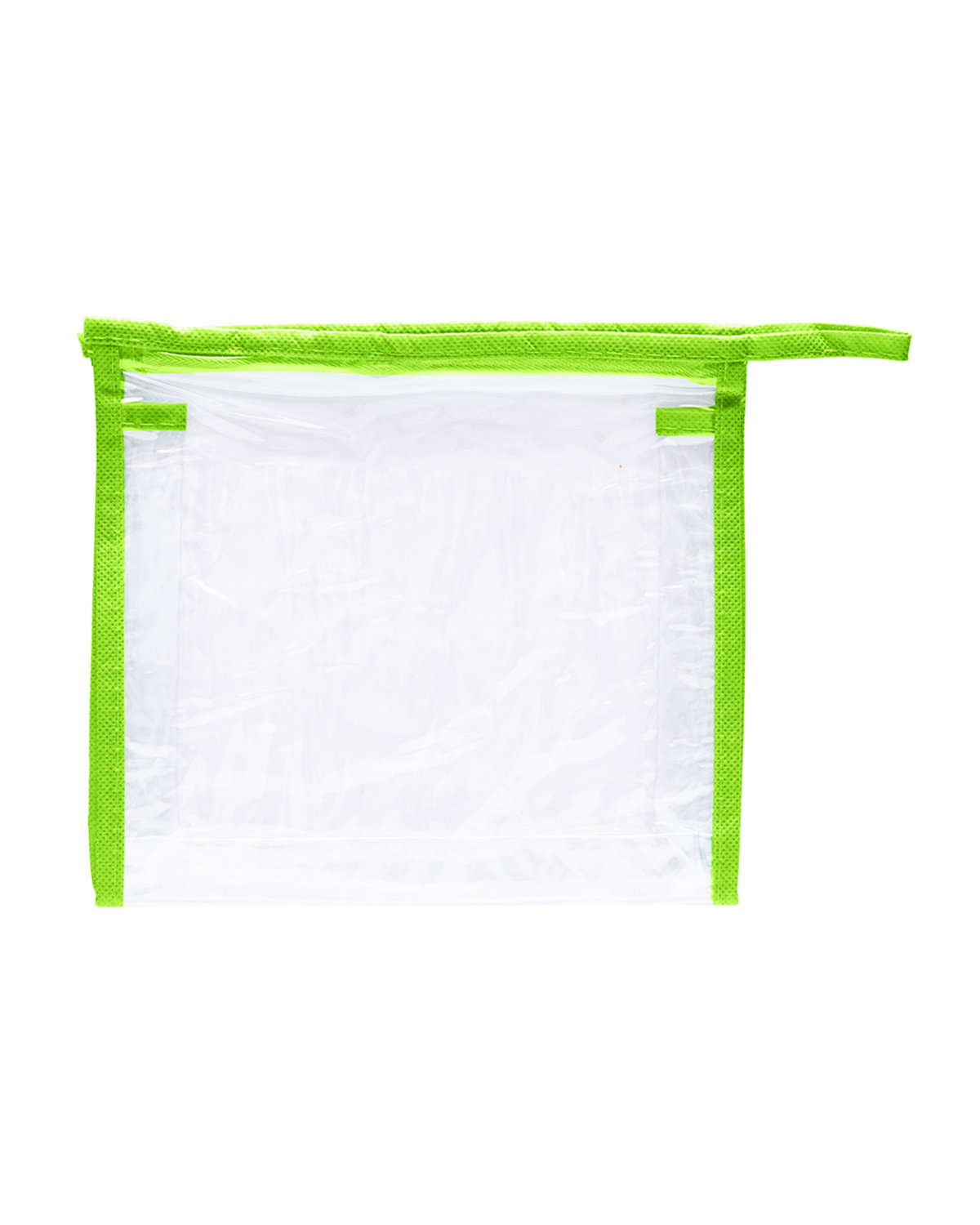 Clear PVC travel case with top zip closure and Non-woven color accent seams. Large enough to hold small personal items including airline carry-on regulation size bottles (not included) of liquids, gels and creams. Includes clear front open pocket and top zipper closure. *24-hour rush service only applies to catalog quantities up to 800 units. 7.7500″ W x 6.7500″ H x 2.0000″ D